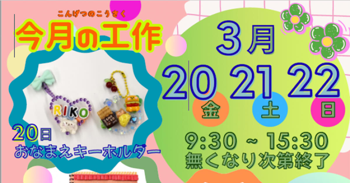 文房具をリボンやシールなどで思い思いに飾り、新学期に役立ちそうな世界でひとつの「お名前キーホルダー」「シャカシャカノート」「デコペンケース」を、日替わりで製作いたします。
