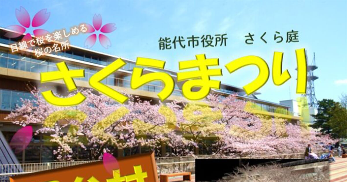 「能代市役所さくら庭」は目線の高さで桜を楽しむことができる名所で、夜間ライトアップされた夜桜もきれいと評判です。
